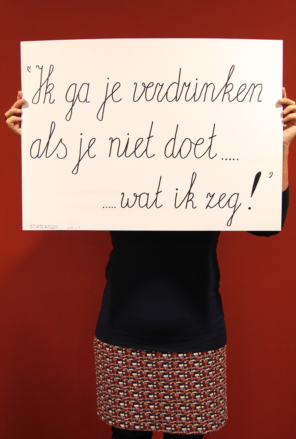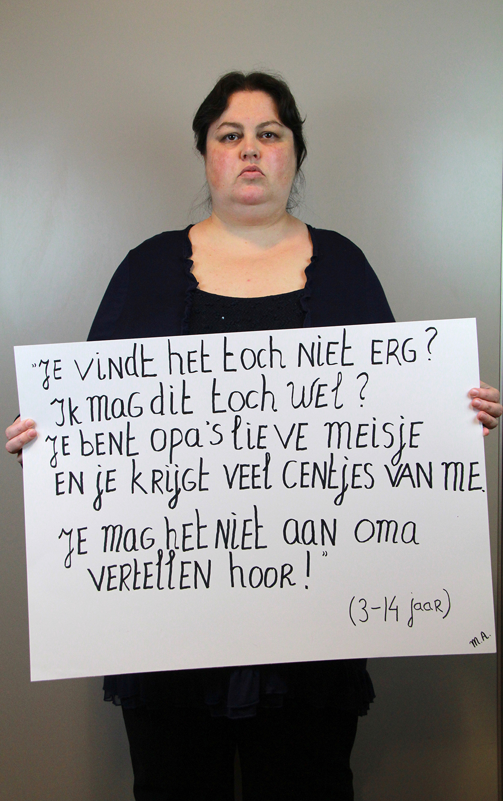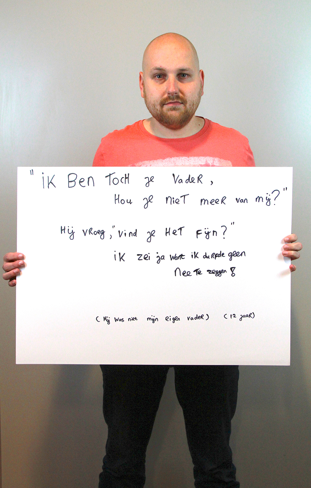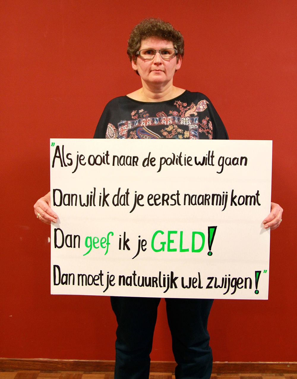 Na een lekkere lunch in het inpandige cafe gingen de deelnemers aan de slag. Uitspraken werden onderzocht en opgeschreven. Ondertussen begon Jeanette Koenen met het op de foto zetten van de eerste dappere deelnemers. Voor sommige was het makkelijk, voor een aantal zeer heftig. Er werd gelachen en gehuild. Rosemary Lengton zong een lied wat ze speciaal gemaakt had voor de week tegen kindermishandeling. Ondertussen was er een uitgebreide borrel, waar goed gebruik van gemaakt werd. Als afsluiting droeg Monique nog gedichten voor, waarna we na een dankwoord vermoeid maar voldaan afscheid van elkaar namen.